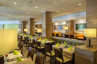 The hotel restaurant serves flavorful German cuisine. A welcoming bar completes the dining experience. Buffet breakfast includes vegan and vegetarian options.